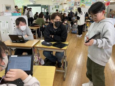 今日は、与次郎チームと麩チームが学年全体に向けて、学びの成果を発表しました。どちらのチームも友達の前で堂々と発表することができ、見ていた子供たちも東根について新しく知ることができました。