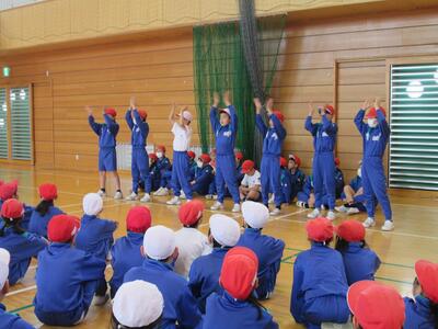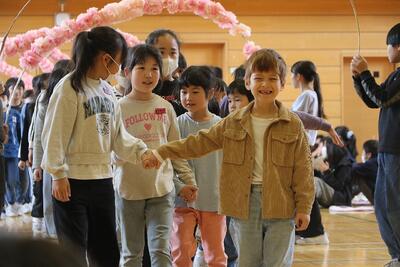 4年生と入場し楽しいひと時を過ごし、最後に6年生からメダルのプレゼントをもらい退場しました。