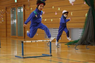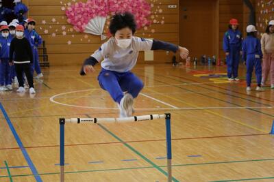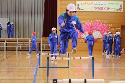 体育の学習では、「走り幅跳び」「走り高跳び」「小型ハードル走」に取り組んでいます。