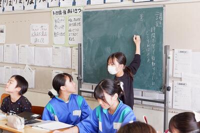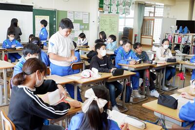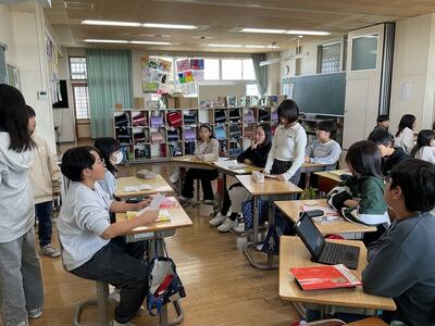5年生では、国語の授業で6年生と話し合いの活動を行いました。どんなことを話すのか、どんな役割を果たすのかしっかりとした準備をしていった5年生ですが、6年生の姿に圧倒される様子が見られました。話し合いに取り組む姿勢、展開の仕方など様々な面ですごかったという声が聞こえてきました。この経験を機に、6年生という立場についてたくさんのことを感じてほしいなと思いました。